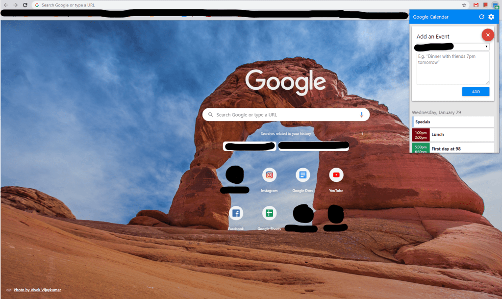 It stays in the top right corner of your screen and drops down with your current schedule. Easily add a calendar event by typing it in. Example: “Dinner with friends 7pm tomorrow.” It will be automatically added to your calendar. So easy!