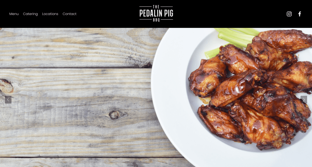 All websites should have a navigation bar at the top of the screen. These links to other pages not only helps users find more information about your products and services, but it also enhances SEO. More pages with keywords means more of a chance you rank (but always answer users’ questions). The Pedalin’ Pig has simple links for menu, catering, location, and contacting. I think these sum it up really well!