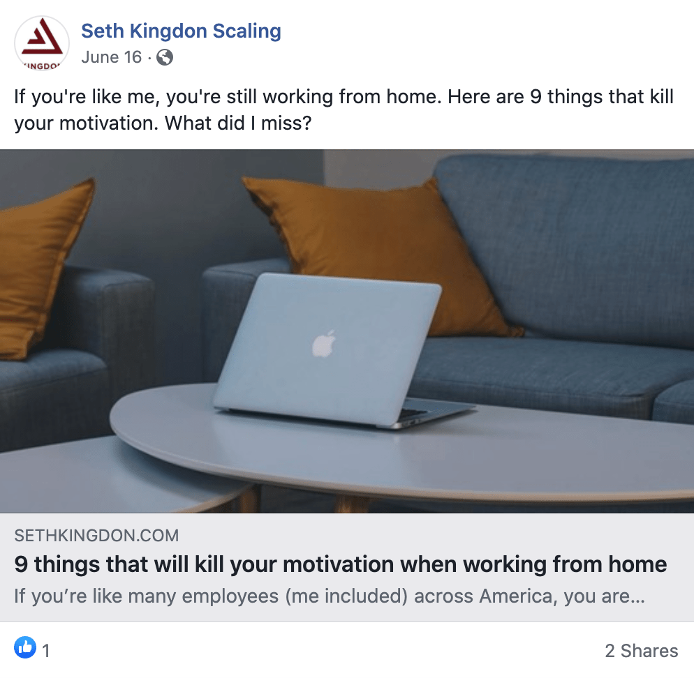 If you regularly upload content to your blog and share it on your social media channels, you’re increasing SEO rankings. Pull a quote from the article and and copy it and a link to a post with an image. That’s the making of an easy post.